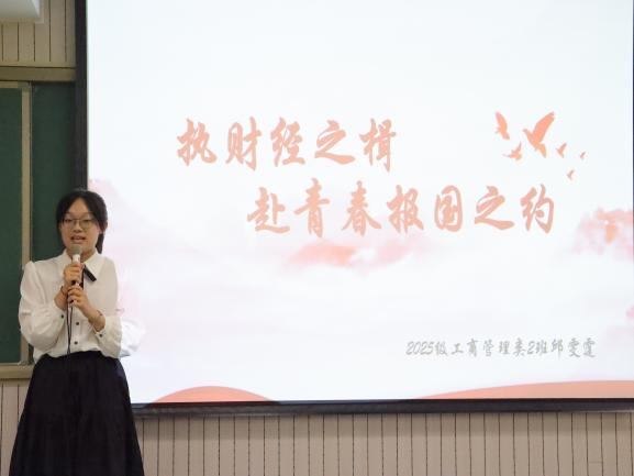 他们用真挚的语言讲述自己对国家、对学校、对青春的理解与期待。演讲中既有对“财经报国”的深刻思考,也有对“我与中财大”的温情诉说,更不乏对“青春奋斗”的豪情宣言。他们的青春之声汇成一幅幅动人的画卷,勾勒出新一代商院学子理想的模样。