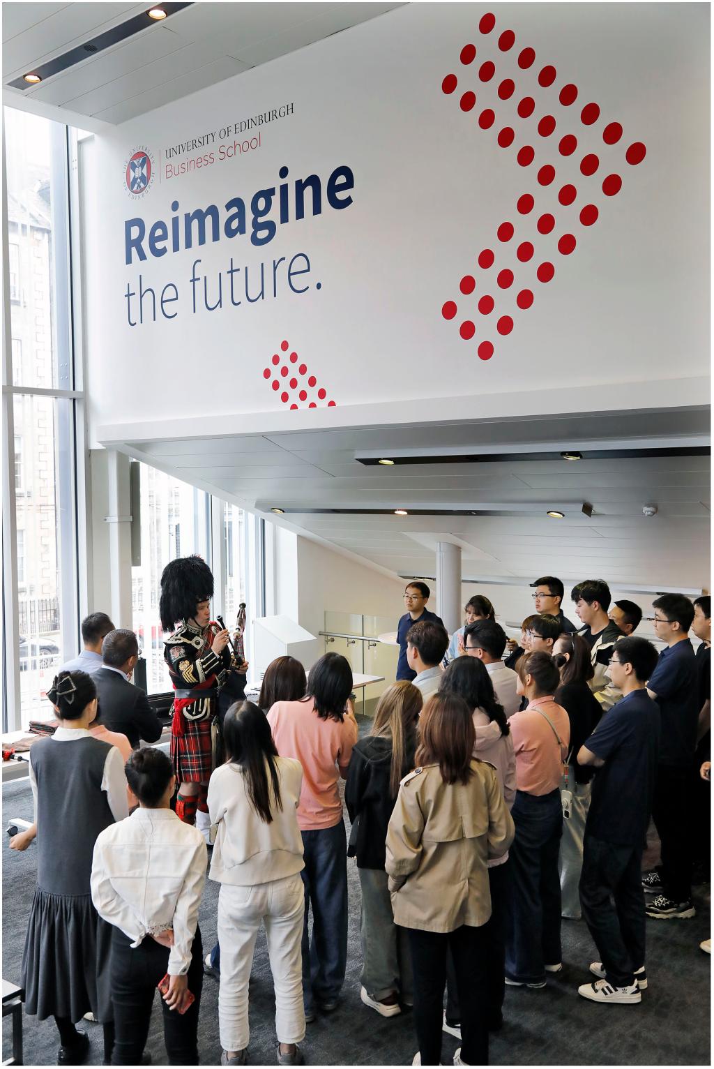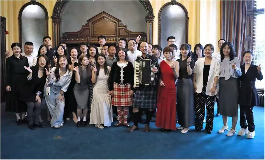 而在圣伦纳德书院举办的欢迎晚会上,学子跟着乐手的节奏学习苏格兰传统舞蹈,沉浸式体验苏格兰民俗;在苏格兰传统乐器风笛体验环节,师生在风笛手的耐心指导下,尝试握住风笛管、感受气息与旋律的配合,尽管初次尝试略显生涩,却在互动中真切触摸到苏格兰文化的灵魂。
