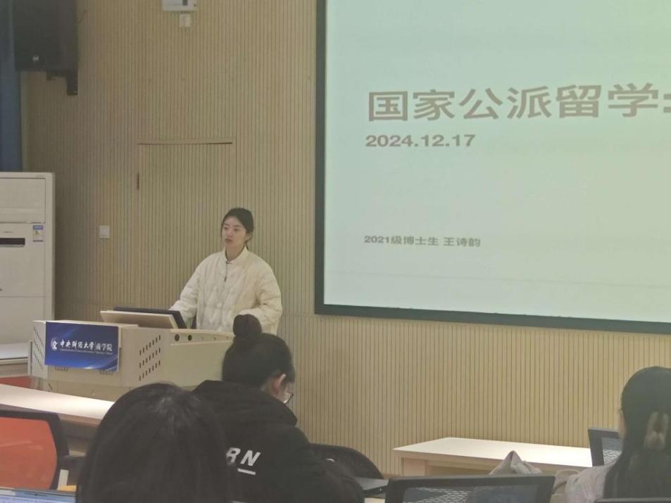 On the afternoon of December 17, 2024, in Conference Room A28 of MBA Education Center, Business School held an exciting and fulfilling sharing session on study abroad and academic experience. The sharing session invited three excellent PhD students from our school to share and exchange in-depth information with the new PhD students in the audience on how to successfully apply for study abroad grants, experience of study abroad life, and experience of dissertation writing and publication.