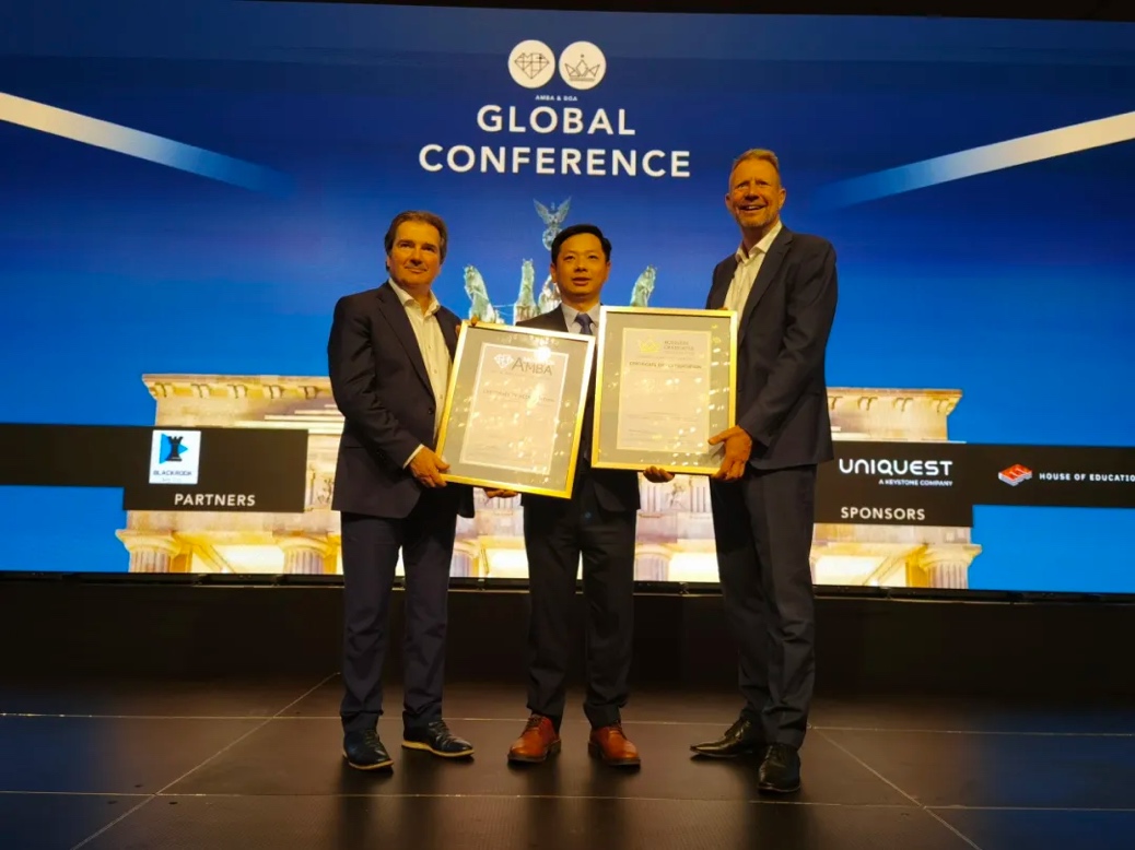 Prof. Zhu Fei, Deputy Director of the MBA Education Centre and Vice Dean of CUFE Business School, was invited to lead a team to attend the 2025 global annual conference of the Association of MBAs (AMBA) and the Business Graduates Association (BGA), held in Berlin, Germany from May 19th to 21st. Also in attendance were Kong Weiming, Director of MBA Student Affairs and Career Development, and Prof. Guo Xin from the MBA Teaching Management Department. The conference gathered deans of top business schools worldwide, academic leaders, and industry experts to explore the innovative development of business education in the AI era and its future direction. Prof. Zhu Fei represented CUFE Business School to share the π-shaped talent development philosophy and model of CUFE MBA at the China Business School Special Session of the conference and had extensive exchanges and discussions with representatives of other business schools on the topic.